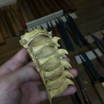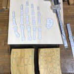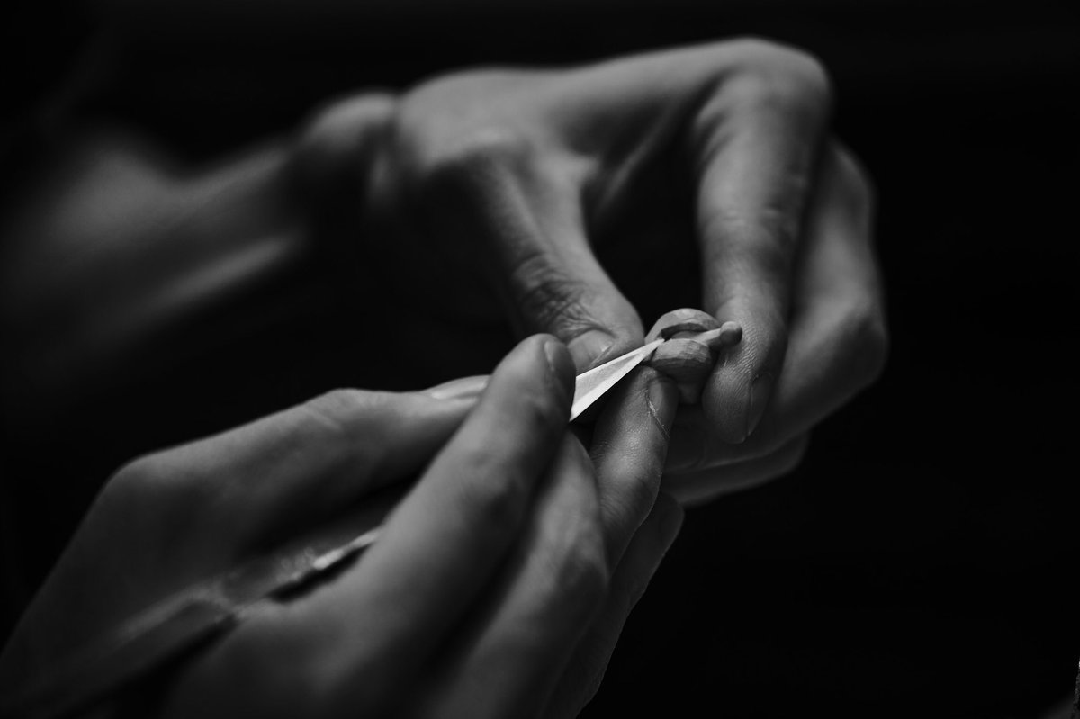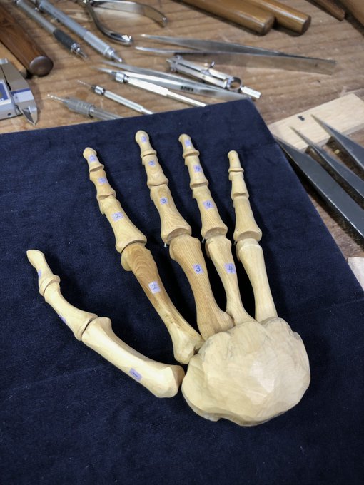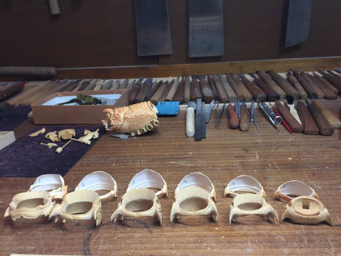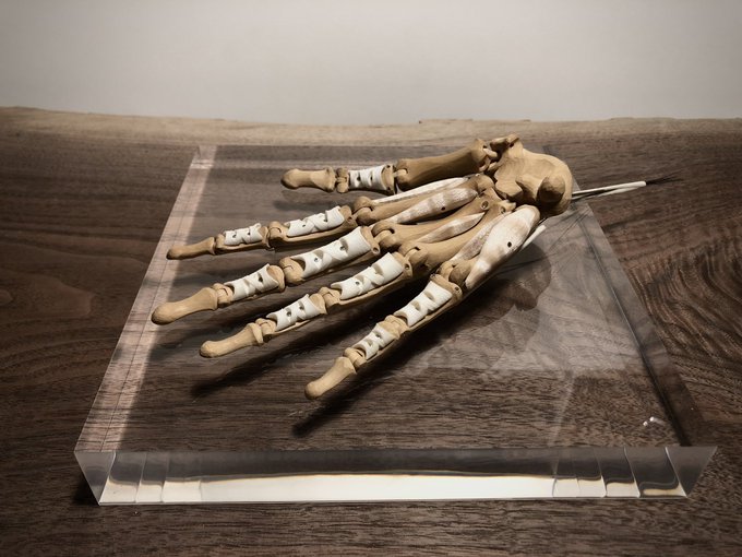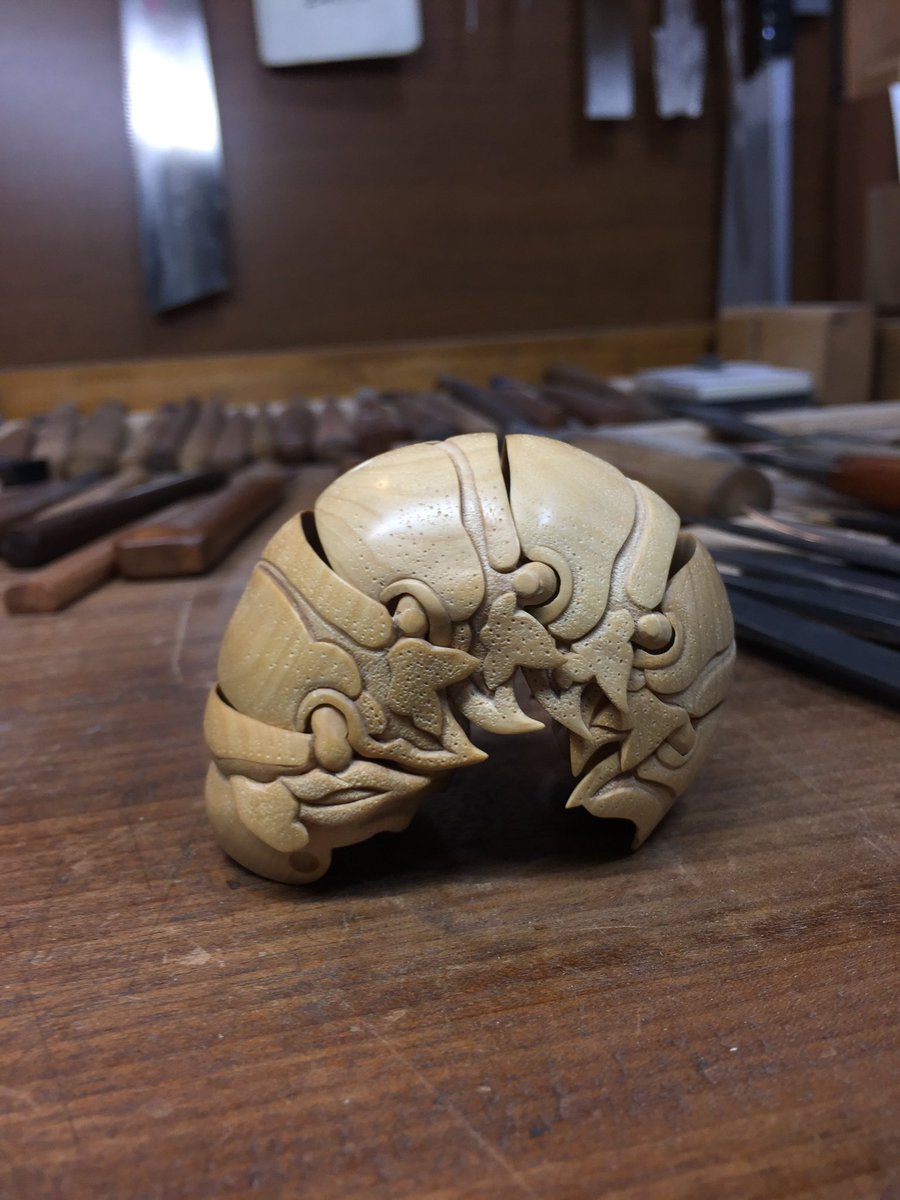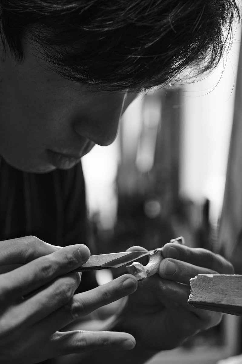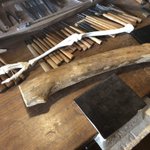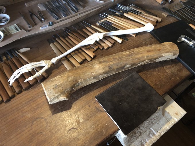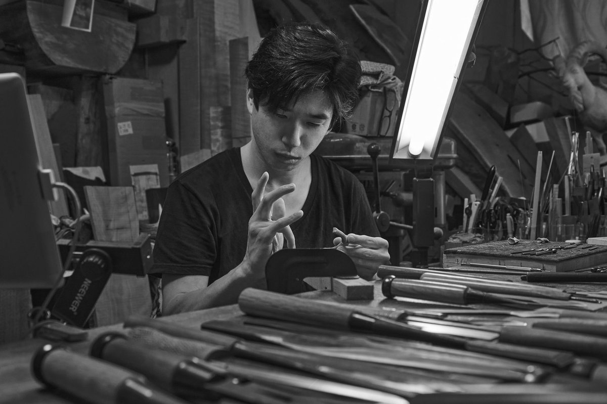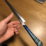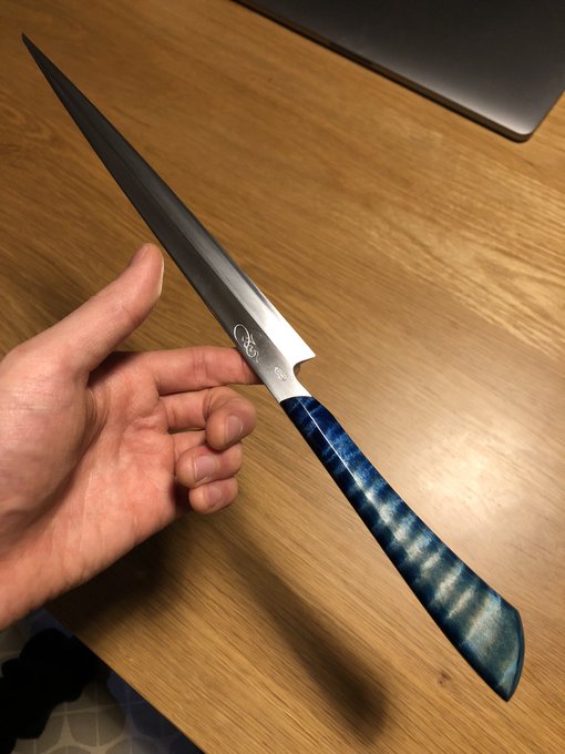 美術館搬入が終わって少し落ち着いたので、壊れていた包丁の柄を作り変えました~。着彩や染めの新技法を試したり、毎日生活の中で水とか洗剤などのヘビーな環境に晒されるので、塗装や接着強度を知るのにも素晴らしいテストピースになってくれます。刃もヤフオクでボロボロ500円だったのを再整形。 twitter.com/i/web/status/1…