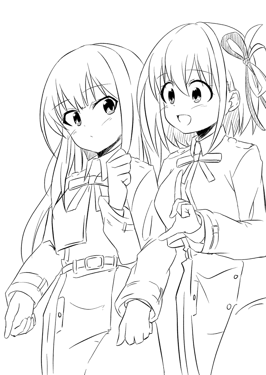 闇鍋ゆりり先生→@YuriYamiNabe333 ごはんにしましょのファンアート描きました 姉のみーちゃんと妹の知花ちゃんの姉妹です^q^
