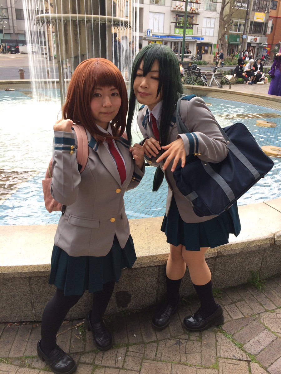明らかに身長が怪しいショットをしてしまった。梅雨ちゃんをカエル座りさせて誤魔化せたかも。 #ビビコス #僕のヒーローアカデミア