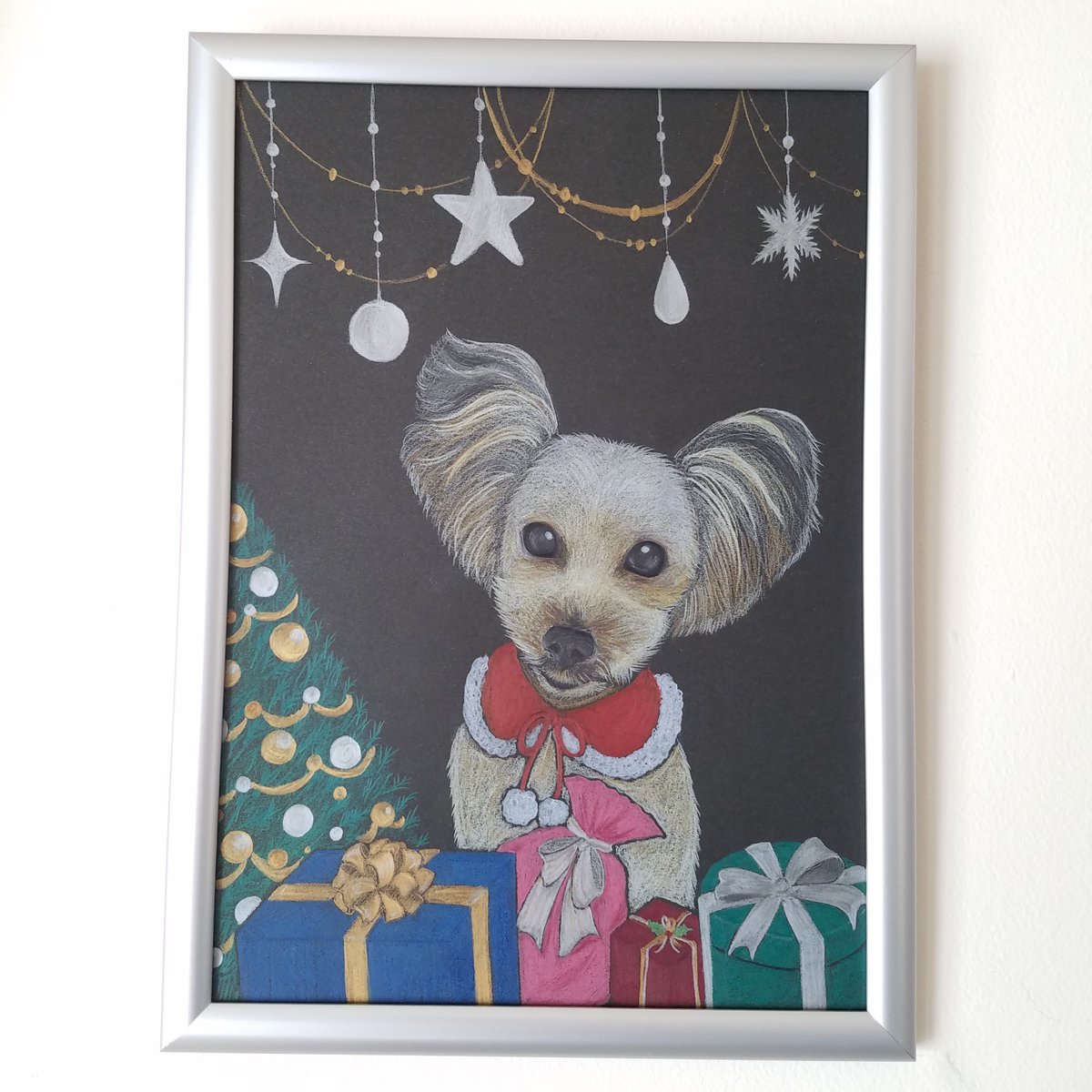 クリスマスイラスト ヨーキーちゃん描かせていただきました。 #イラスト #イラストオーダー #ペットの似顔絵 #ペットのイラスト #クリスマス #クリスマスイラスト #ヨーキー #ヨークシャーテリア #愛犬 #いぬ #色鉛筆画 #チョークアート #イラスト好きさんと繋がりたい #絵描きさんと繋がりたい