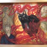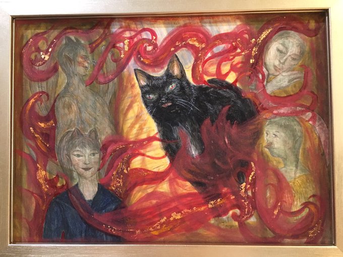 『老猫は夢をみる』 岩絵具、水干絵具、墨、切箔、楮紙 動物は長生きすると様々に化ける。 老猫の夢の中で煉獄の炎に巻かれる 魑魅魍魎たちを描きました。 反省点多々ありますが、、。 ハロウィンぽい色合いになりました(笑) #絵描きさんと繋がりたい