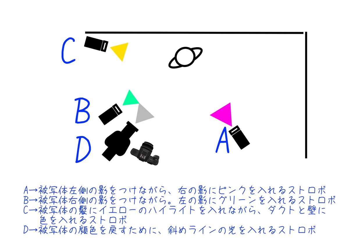 ハコスタブログで吉田さんに解説丸投げされたので出しておきますね! 基本的には直射直射なので割と簡単。 ピンクとグリーンの光量バランスだけ、影が同じくらいの濃さになるように調整が必要です。 元のお写真はこちらのブログに載ってます〜。 blog.hacosta.co.jp/2021/10/1tokyo/ #涼子フォト #ハコアム東京
