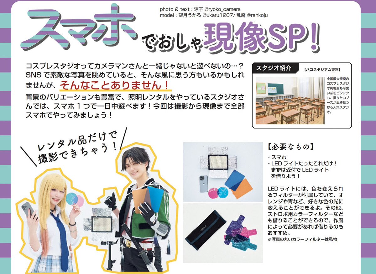 【告知】 本日4月1日(金)発売の #COSPLAYMODE 今回は表紙の撮影も担当しました。 マネしてコス写はキャラクターイメージに合わせた女子キャラ撮影徹底解説😊 スマホでおしゃ現像は、なんと撮影から全部スマホ特集です! amazonでも購入できます! amzn.to/3JVsSEg