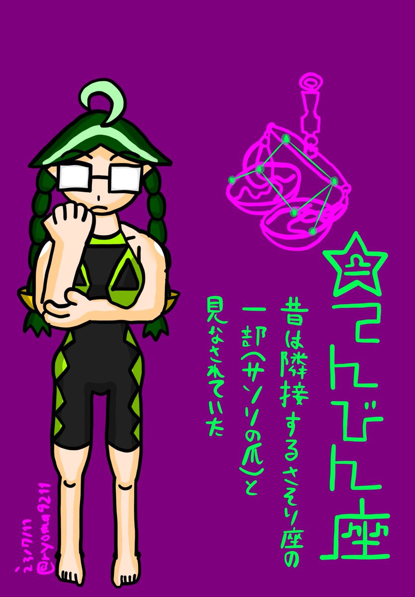 YouTube(ベイチューブ)のメタベイ27話視聴したので 星座擬人化オリキャラ ( #星の少年少女 )のてんびん座ちゃんの水着姿〜❗️♎️ リプに余談載せたのでもし良ければご覧下さい #絵描きさんと繋がりたい #夏の創作クラスタフォロー祭り