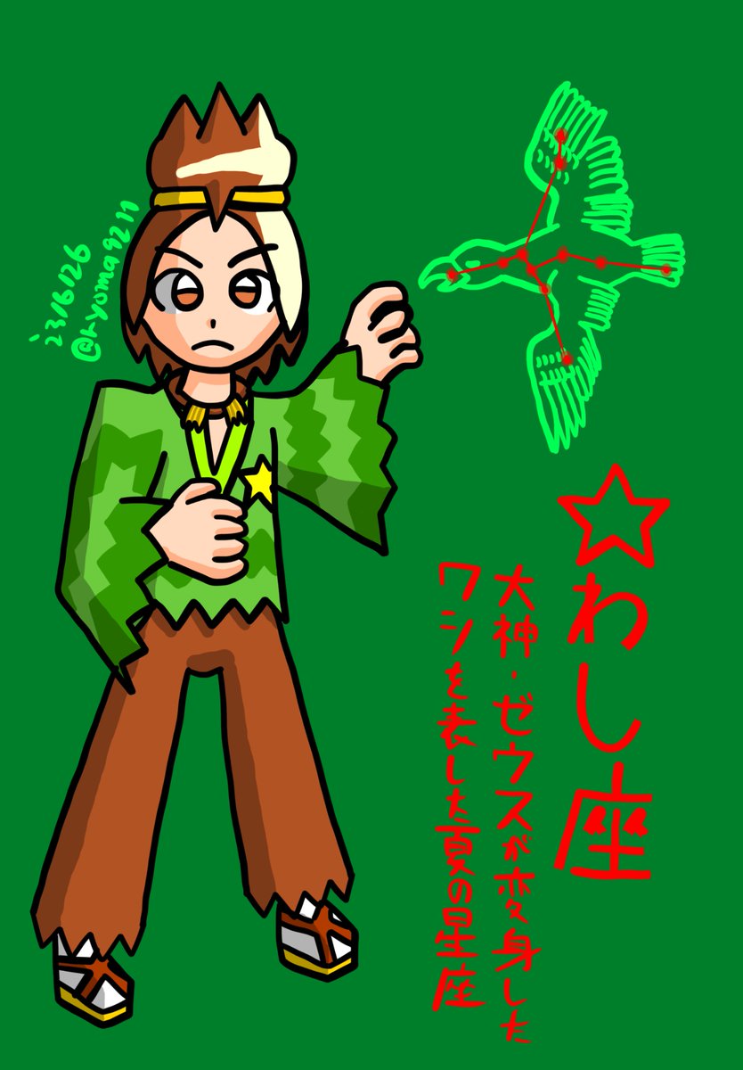 YouTube(ベイチューブ)のメタベイ24話視聴したので 星座擬人化オリキャラ ( #星の少年少女 )のわし座くん〜❗️🦅 リプに余談載せたのでもし良ければご覧下さい #絵描きさんと繋がりたい #夏の創作クラスタフォロー祭り