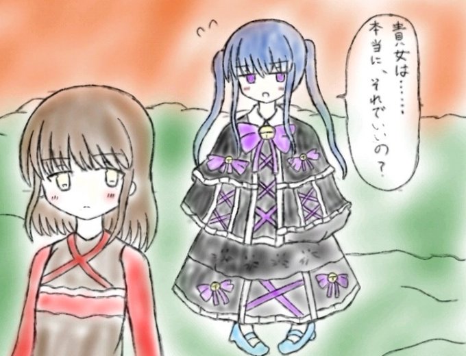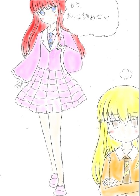 本家の可愛さには敵いませんが頑張りました。 しっくりこず二パターン描いてみたが... 「この服も、着てる子も可愛いから、ありがたいけど私には勿体無い気がするわっ」 twitter.com/zubairu_01/sta…