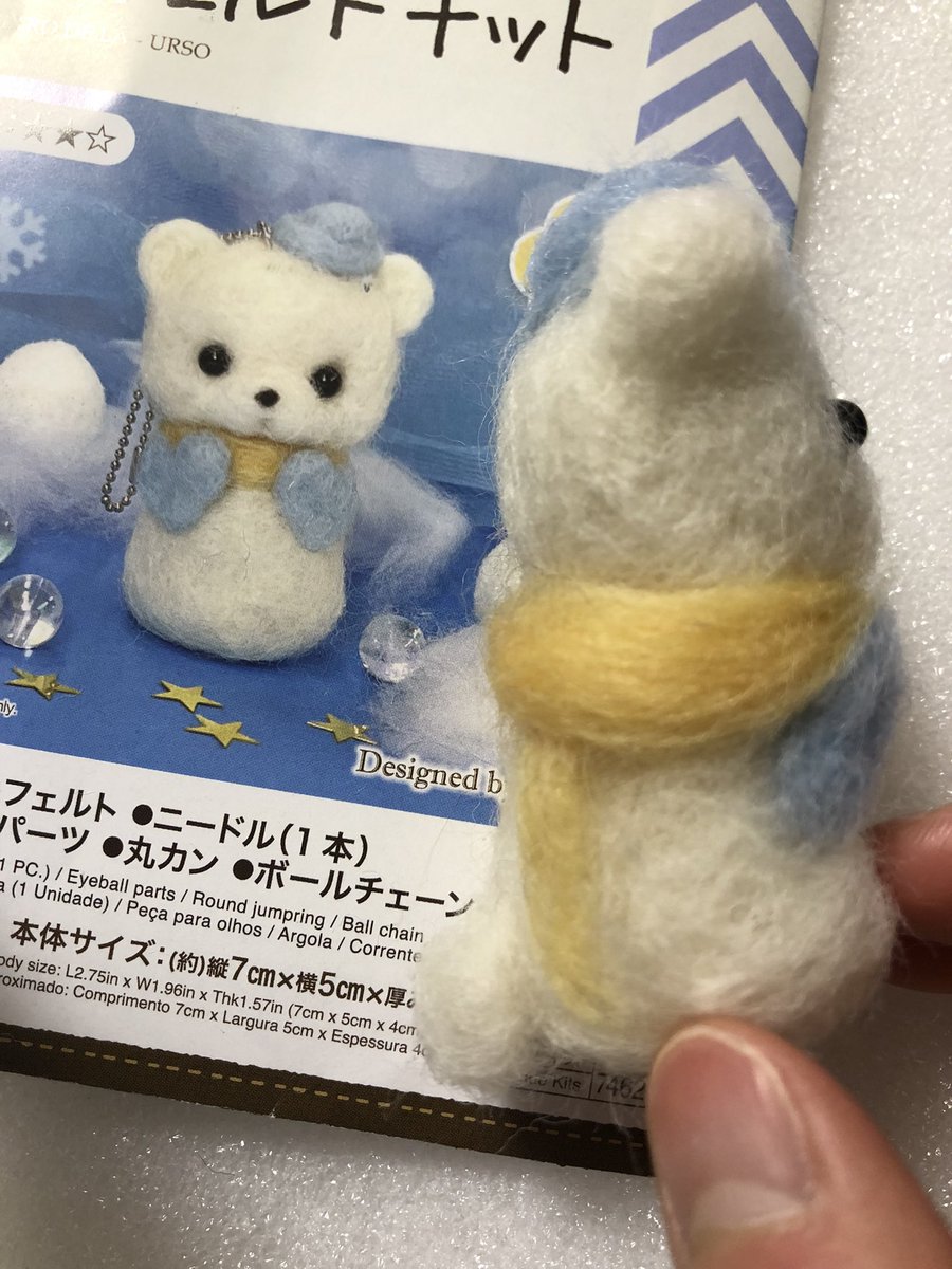 ペンギンの着ぐるみをきた白くまさん🧸 白くまのみみをつけようか…ペンギンの着ぐるみの中に隠してる設定にしようか…🤔 悩み中…🤔💭 明日はもう少し微調整しようかな〜 #羊毛フェルト #羊毛フェルト初心者 #ハンドメイド #ハンドメイド好きな人と繋がりたい