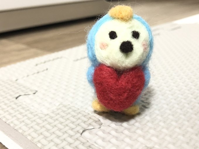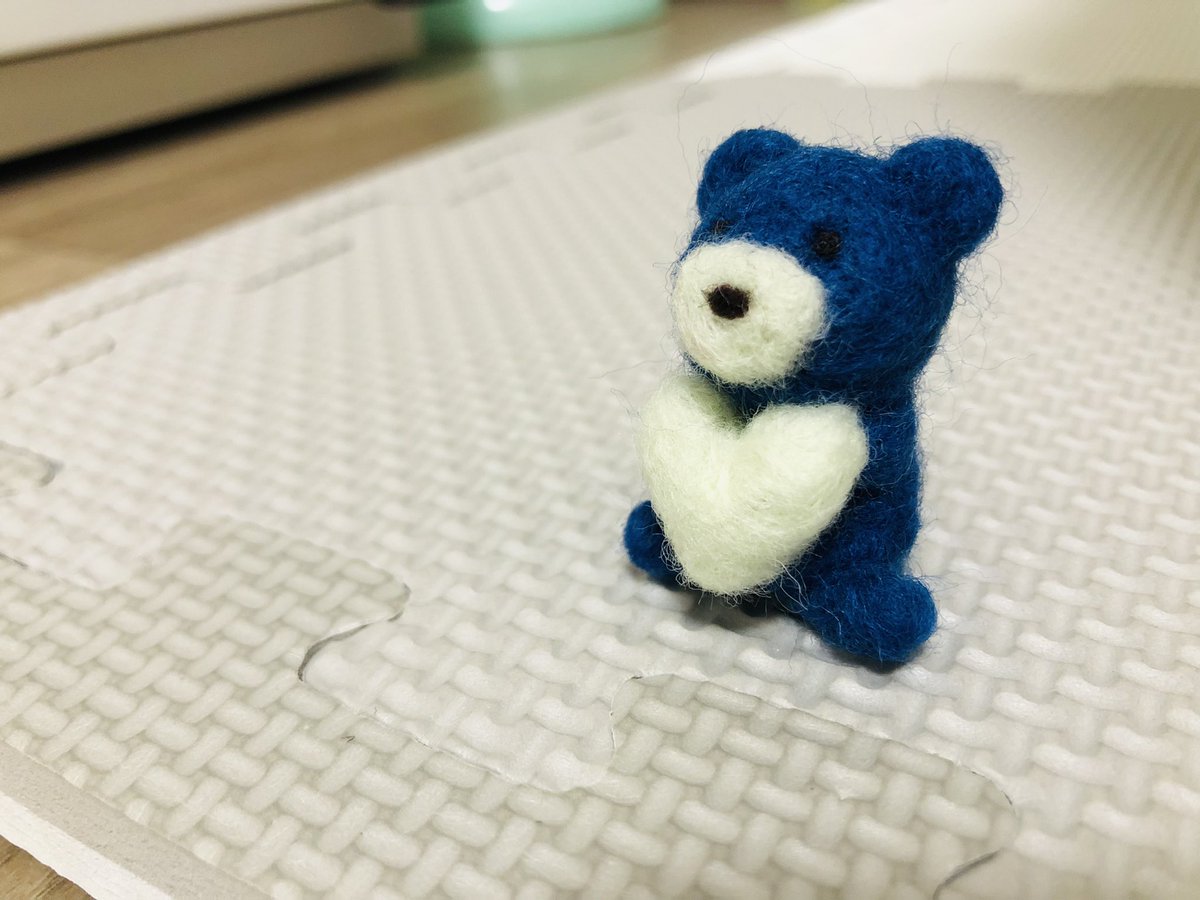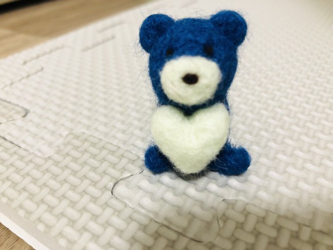 目つけない方がよかったかな…😂 バレンタインも近いからハートを持ったくまちゃんが出来上がりました🧸💕 まだまだ練習が必要ですな…🤷♀️ #羊毛フェルト #羊毛フェルト初心者 #羊毛フェルトくま #くまちゃん #ハンドメイド #羊毛フェルト好きな人と繋がりたい