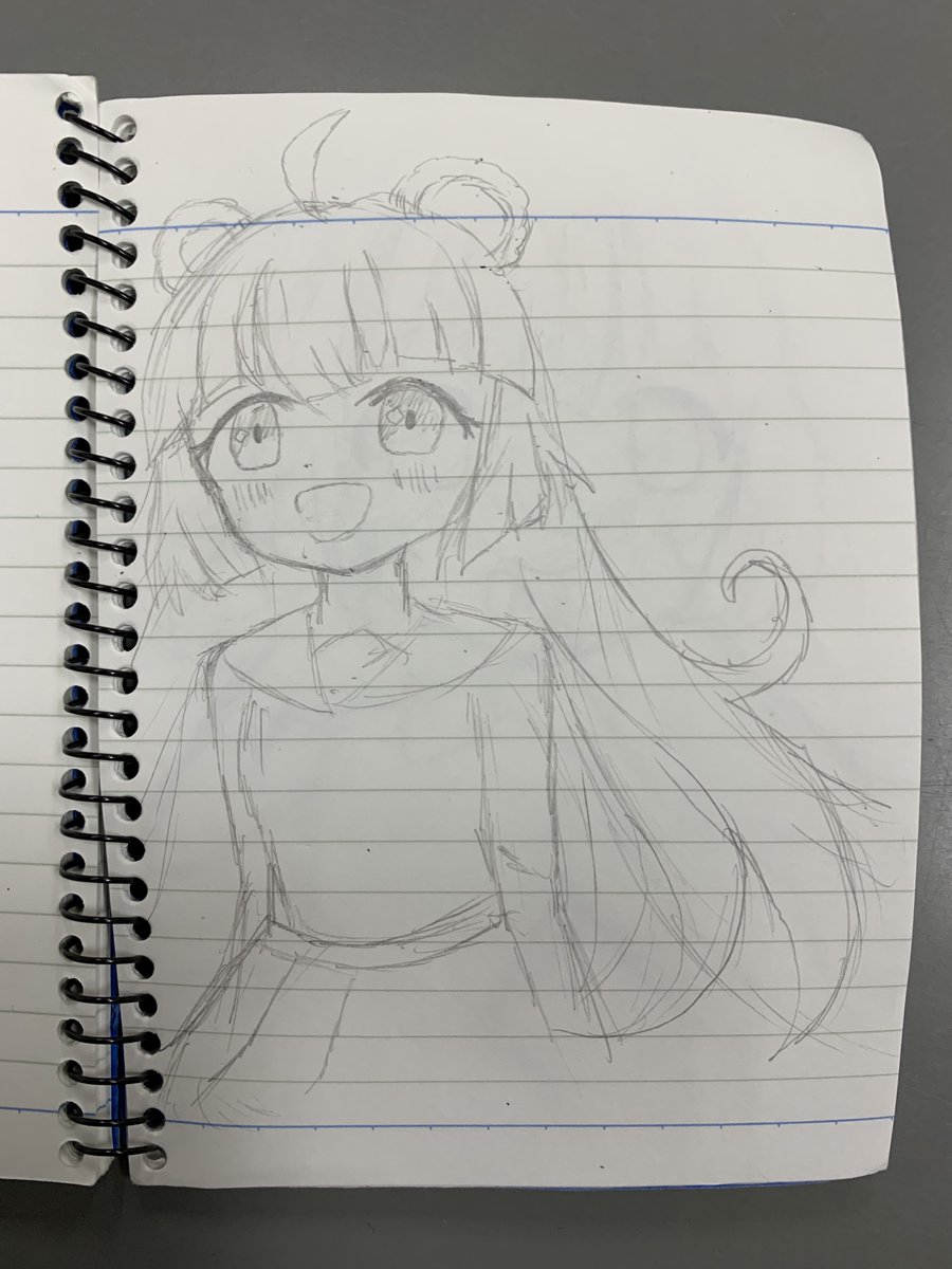 #今月描いた絵を晒そう ちゃんとしたやつ一枚しか描いてなかったのでツキノちゃんのらくがきも置いときます😌