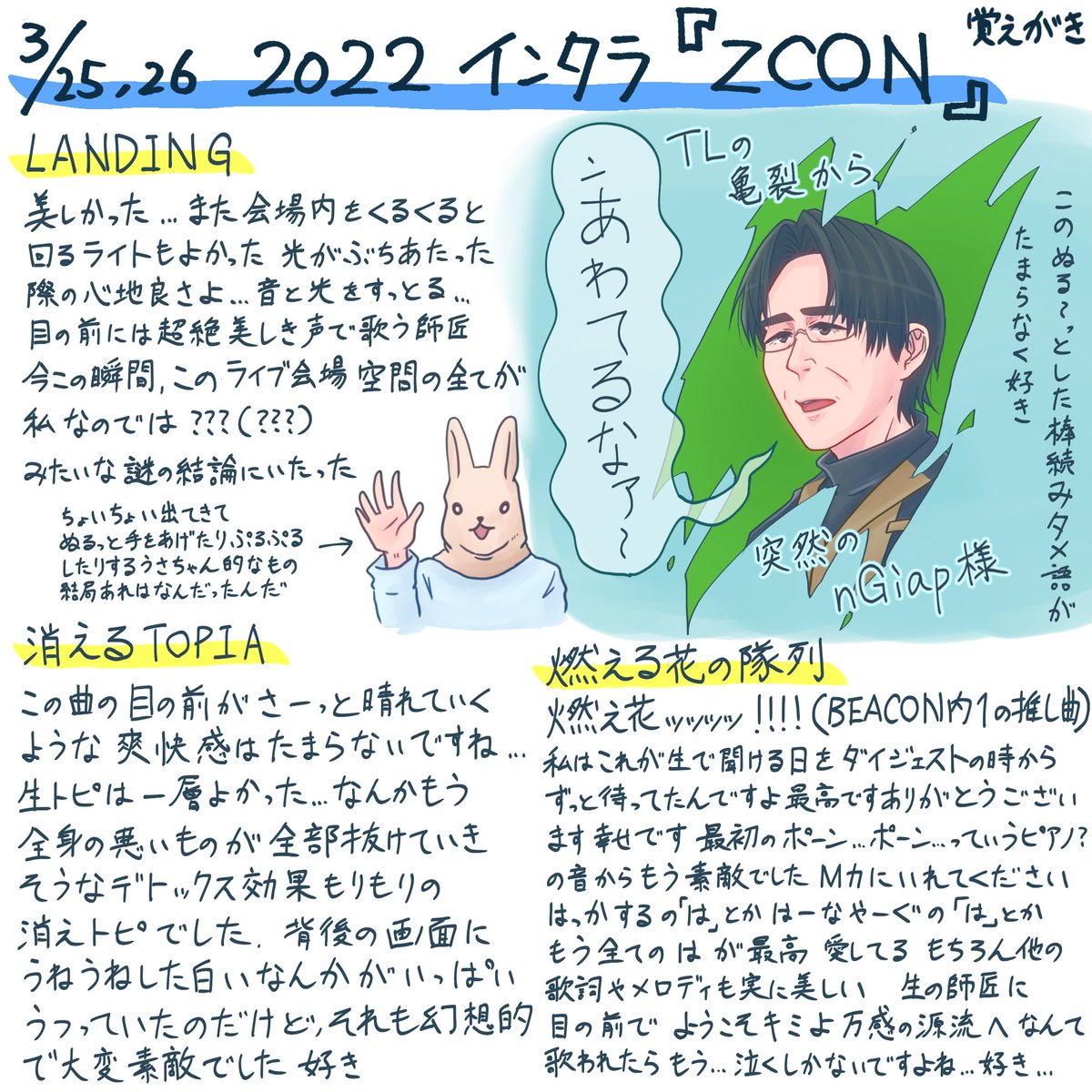 76 313 唐突に思い出したZCON2公演目の思い出 申し訳なかったと思う でもこう思った人私以外にもいると思うんだよなぁごめんね 22/06/12 12:35