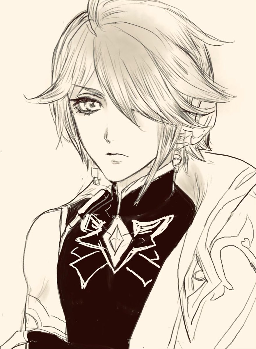リクエストいただいてたアルハイゼン描いた〜モノクロ落書きで申し訳ないですが…!楽しかった✨