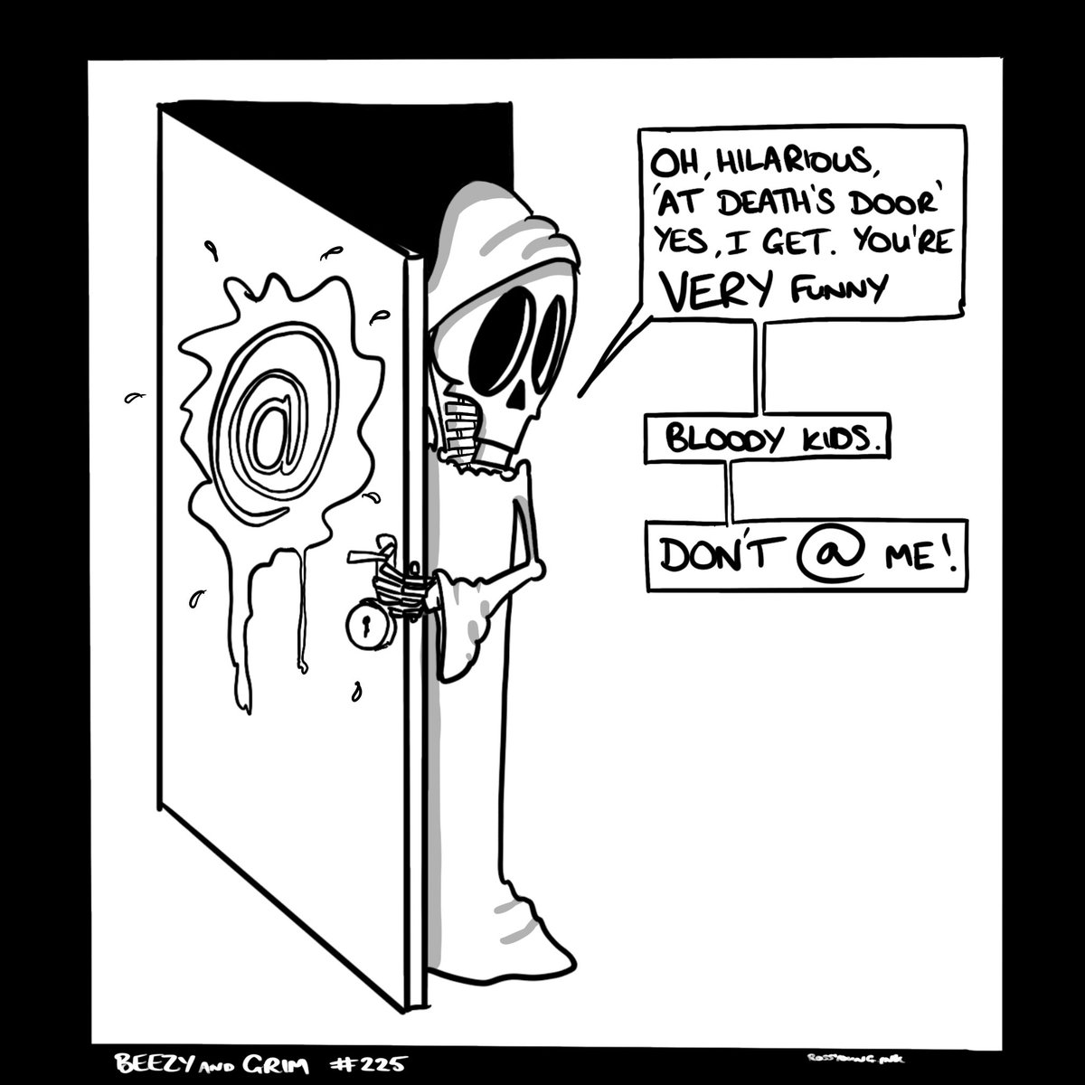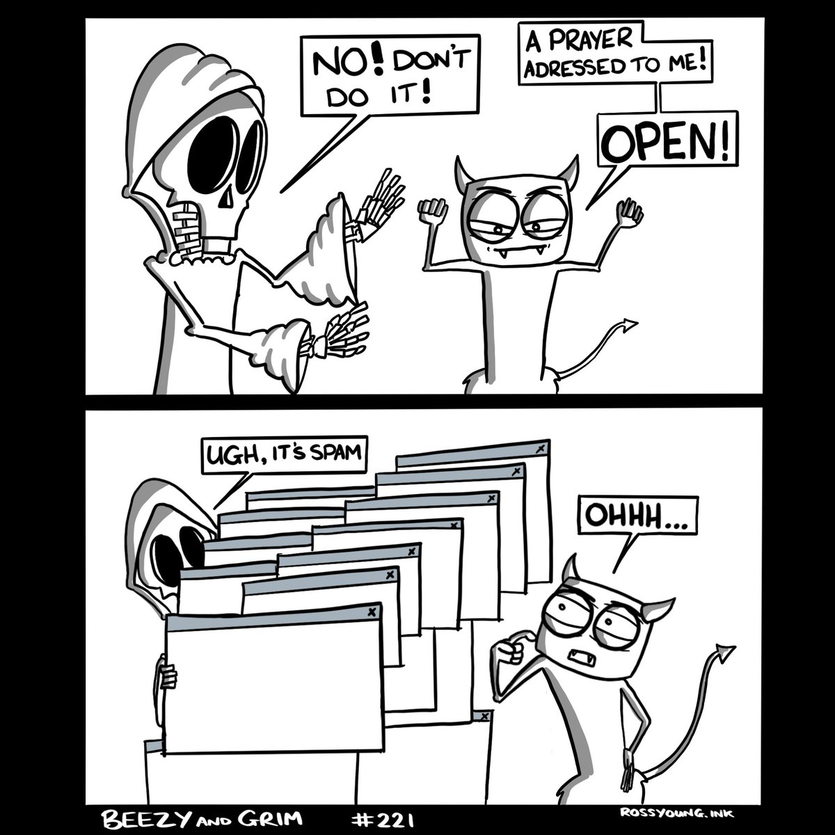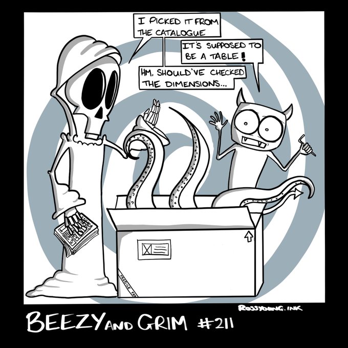 Only through true evil deeds can Beezy be summoned. #beezyandgrim #webcomic #webtoon #comicstrip #ComicArt #comics #Procreate #dailycomic #dailycomicstrip #inktober2022 #webcomic #Inktober