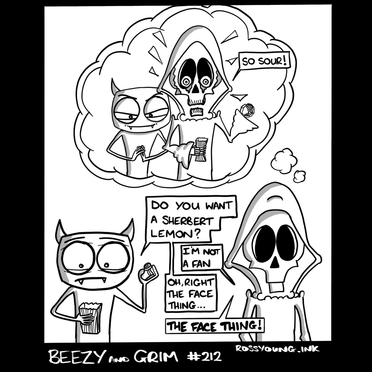 #beezyandgrim #inktober2021 #Inktober2021Day11 #sour #drawtober #dailycomicstrip I was going to go full raiders of the lost ark but… well, it would have taken a lot longer, so you get this. Suck it up.