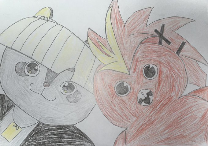 0 2 表情はなんともいえないけど2匹描いた〜 なんとなくだけど並べたかった😊 #封魔絵 #ガンマのラクガキ 23/06/25 01:48
