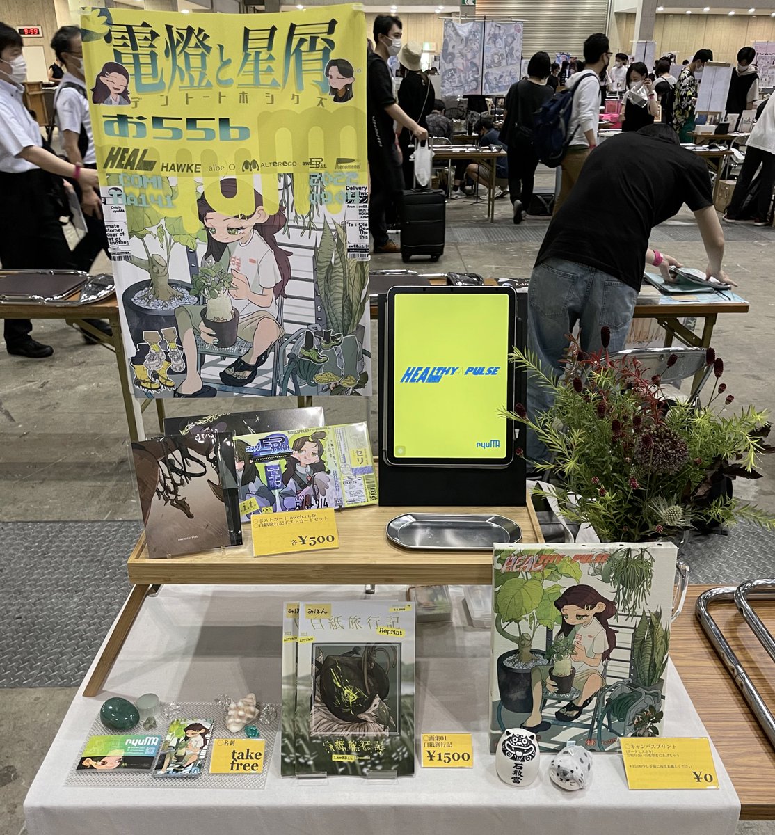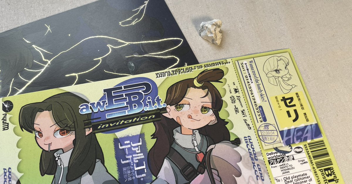 #COMITIA142 【COMITIA142頒布物②】 ・aweb.i.t.大判ポストカード ¥500 (120×235mm ) ただのデカいポストカード(両面)です。 (前回のCOMITIAにて販売したもの) サイズがわかりにくいと思うので2枚目を見てください、僕が好きな石と比較していますよ!