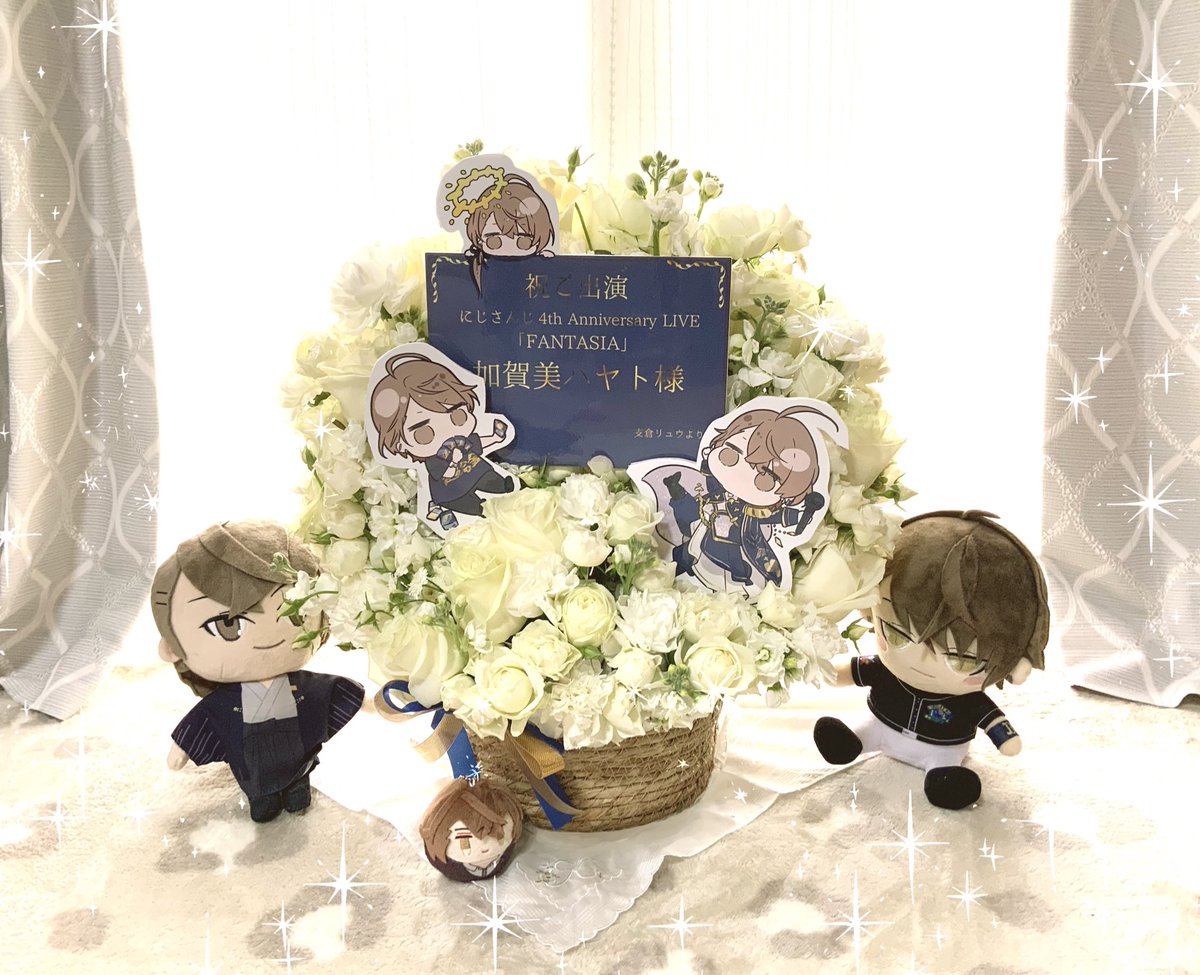 「にじさんじ 4th Anniversary LIVE『FANTASIA』」で加賀美ハヤト社長に贈る予定だった楽屋花です。 皆様の一日も早いご回復と、またリベンジ公演でお会いできることを祈っております。 #加画美 #fantasia_day2 #FANTASIA祝い花