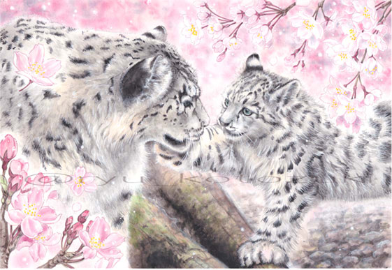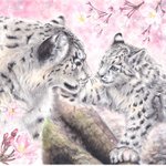 #作品を載せて自分の作品を知ってもらおう 素敵なタグ。参加させて頂きます。 水彩+パステルで画像のご了承頂き、モデル、モチーフに主に猫ちゃん描いてます。 ネコ科もたまに描きます。 ④のユキヒョウのユーリとお母さん。都内の展示会で原画見て頂きたい。(予定ないけど💦)