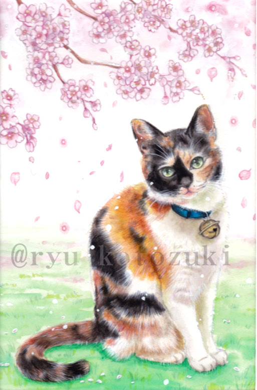 アートスープ@GalleryArtsoup 様の #猫町展2 に出展している「一緒にお花見をしませんか」鈴懸 嶺@/猫ネタ@ZgyWhIeOA6Wy4H5 様の檸檬さんをモデルに描きました。クビを傾げた写真を見た時、桜のお花見に誘うイメージが湧きました☺️ artsoup.buyshop.jp/items/71738736
