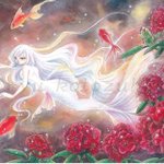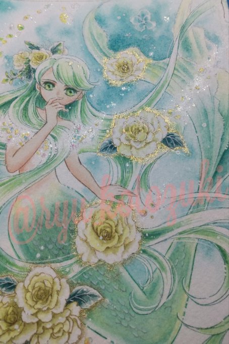 #ジルベールとマリーの肖像 参加します。 「水に揺らぐ紫陽花」水の上に散らばった紫陽花が綺麗で。こんなイメージが湧きました。 水彩、パステル色鉛筆を使用して描きました。光のホワイトだけデジタルで入れました。 なんか、私の描く花びら薄さを感じない😫