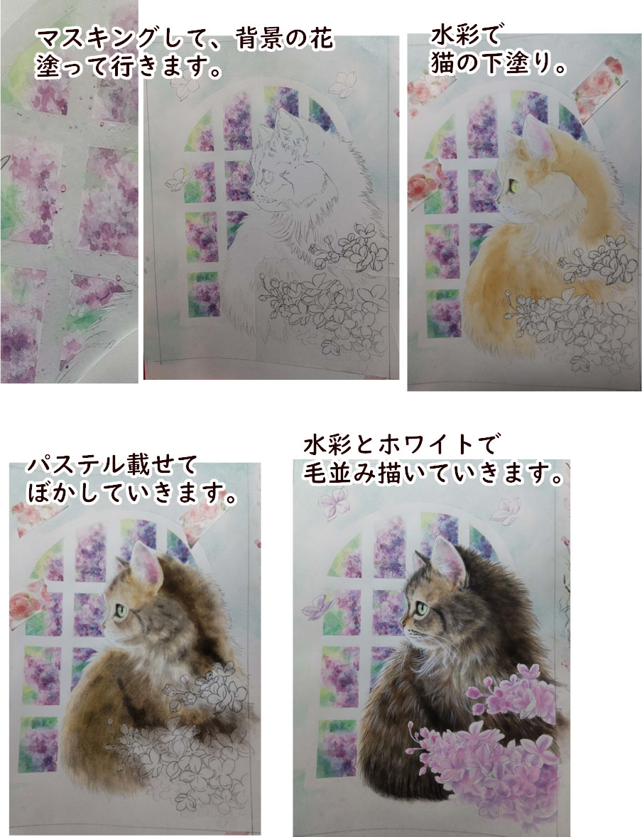 #作品を載せて自分の作品を知ってもらおう SNSで見た猫の画像を御了承を頂きモチーフやモデルに、水彩、パステル、色鉛筆を使用して描いてます。4枚目は猫のダイクロイックアイの瞳からイメージした少年。