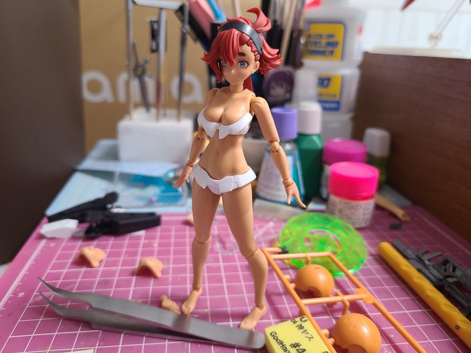 というわけでうちの序列二位が完全体になりました 登場から1週間で作ったヘッド…序列二位でDIYの精神を身に付けなかったら30MSユウカもなかったと思う それはそうと序列二位いろいろ作り直したいとこもある #アサルトリリィドール部