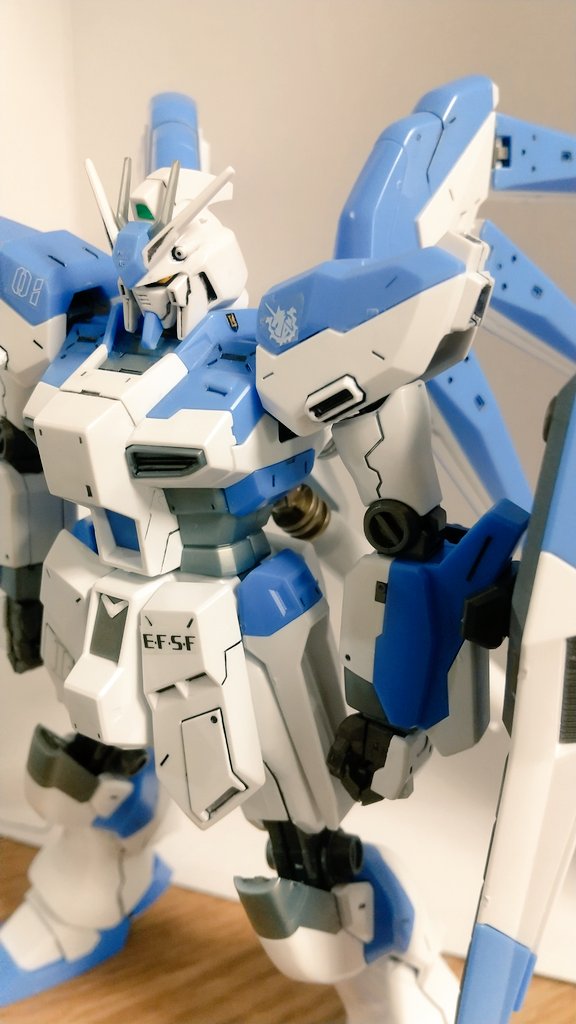 塗装失敗地獄とスミ入れ地獄を乗り越えて組み立てhguc hi-ν完成…😅あとはトップコートだけ😁 #ガンプラの画像貼るとRTされると聞いて #ガンプラ好きと繋がりたい #ガンプラはどんな自由な発想で作ってもいいんだ