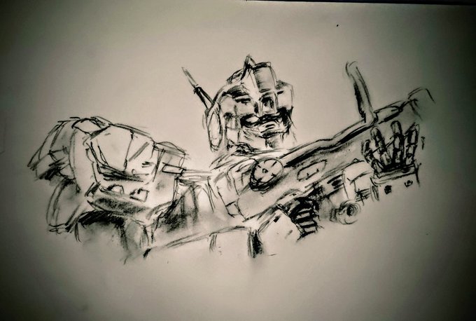 ガンダムを随伴機に従え八面六臂の活躍をするツインアイのジム。 #イラスト #芸術の輪 #アナログ絵 #鉛筆画 #drawing #美術ネットワーク #みんなで楽しむTwitter展覧会 #芸術同盟 #絵柄が好みって人にフォローされたい #誰にでも自分だけのガンダムがある