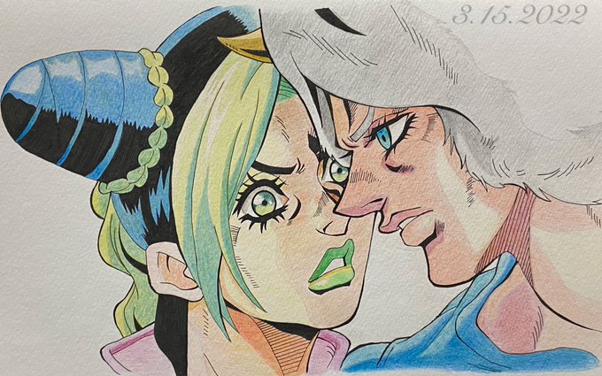 #みなさん去年の今頃はどんな絵描いてましたか 3.15.2022 🦋✨🌧 あっ😳⁉️✨ これもう1年経ったんだ… 信じられない😱 徐倫も追加で描いてましたッ! この時の集中力は凄かった😤(自画自賛) 頑張ったから気に入ってる☺️✨