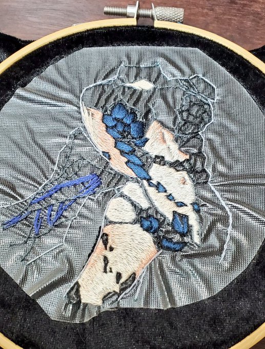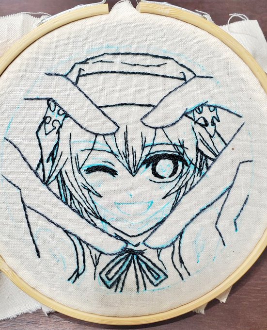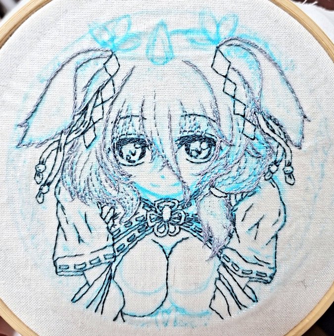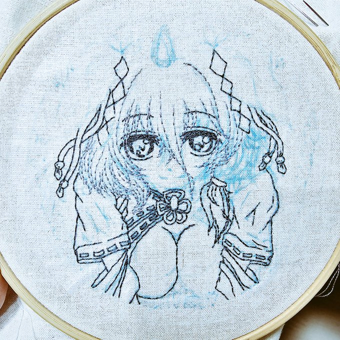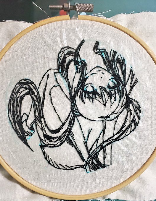 6 23 試作していたナタク進捗。 これは原画の質が問われるやつやなって思いましたまる_(:3 」∠)_ でも何より作業にならずに製作出来るのが1番楽しい( ˶`꒳´˶ )ムンッッ! あと頭の線入れて黒は終わりかな。 最後モノトーンにするか色入れるかは悩みどこ… #アイギスお絵かき #刺繍 22/11/21 21:23