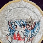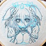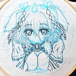 オーガンジーラピス様ほぼ完成形! あとは展示用枠に移して裁断して裏糸の処理したら終わり! 遠目で見たらシャボン玉ぽいはずなのでこれ以上ごちゃつく前に撤退_(:3 」∠)_ #アイギスお絵かき