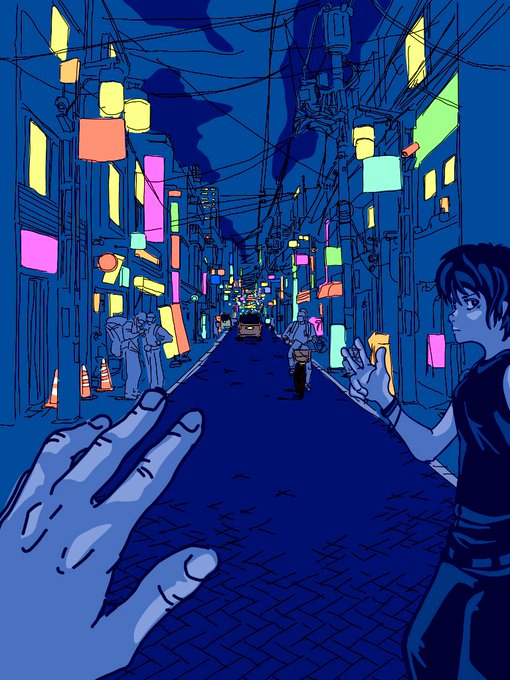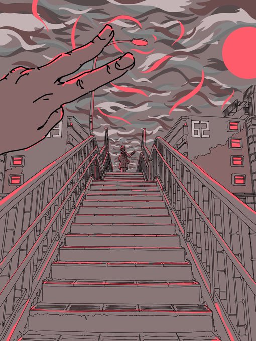 幻想街〜歩道橋〜 完成。 #イラスト好きな人と繋がりたい #絵 #絵垢 #イラスト #イラストレーション #illust #illustration #幻想 #妄想 #橋 #夜 #night