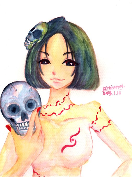 #今年もあと1ヶ月になりましたが画力がどうなったか見てみましょう 今年初めに描いた絵(画像一枚目)と、一番最近描いた絵(画像二枚目)。まぁ、なんとなくマシになった??そんな変わらんかー。あーはん。←