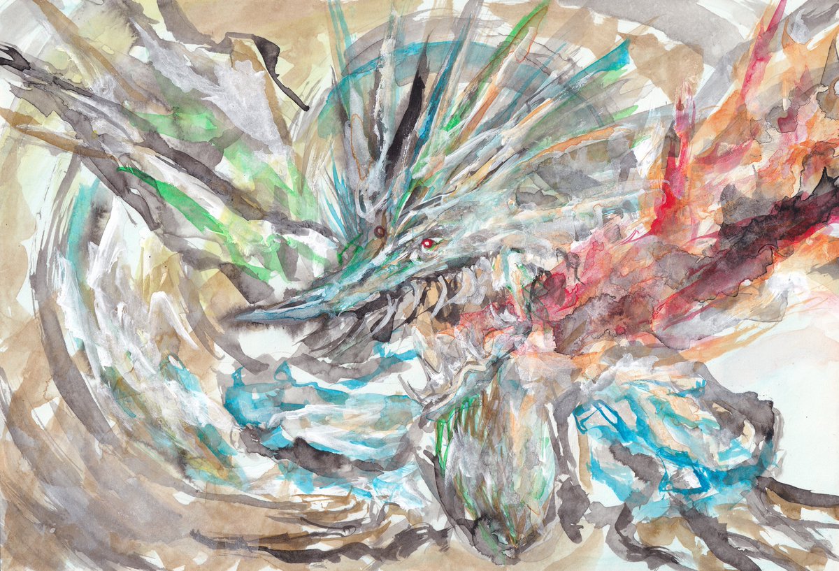 人物はフリー素材の方。笑顔のお顔との合わせが難しい。免許のような無表情のがやりやすいかもね。 #絵描きさんと繫がりたい #イラスト #デザイン #絵 #illustration #art #ドラゴン #竜