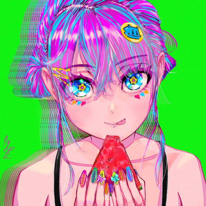 今日も一日お疲れさまでした😌 いいね❤️🔁リプフォローありがとうございます🤣 過去絵です✨ kawaii girl M【すいか🍉】 また明日おやすみなさい💤😪 #みんなで挨拶 #みんなでgn #可愛いと思ったらRT #NFTCommunity #イラスト