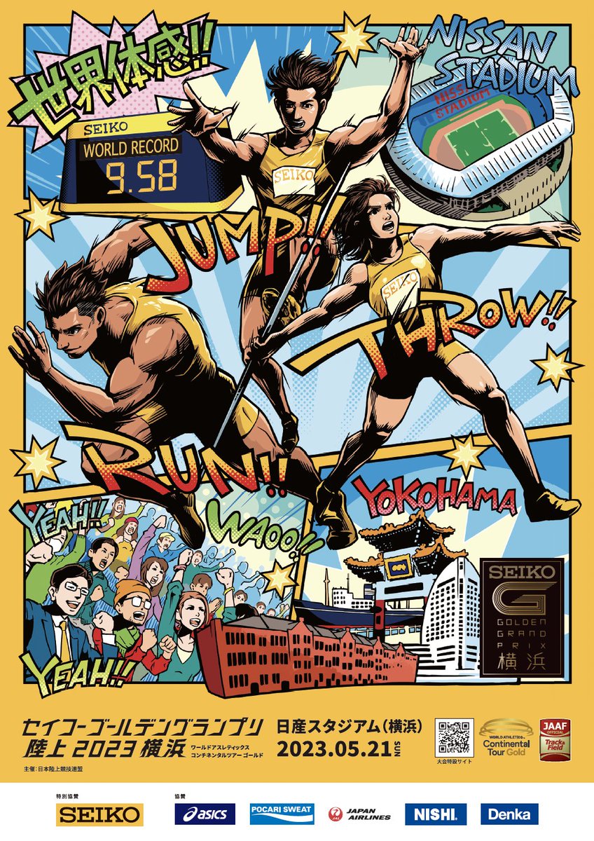 「セイコー ゴールデングランプリ陸上2023横浜」のポスターイラスト描かせていただきました。陸上競技のバーンという感じの迫力が表現できたのではないかなと思います! goldengrandprix-japan.com