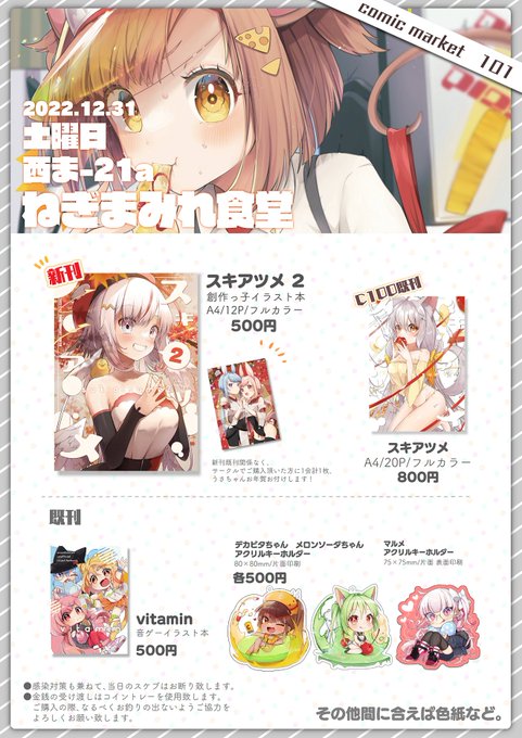 【#C101 お品書き】 遅くなりましたが冬コミのお品書きです🦀 ˗ˋˏ 12/31(土)西ま21-a ˎˊ˗ 明日お留守番なので、1日かけてミニ色紙何枚か描いて持って行きます! 寒いのであったかくしてお越しください~🍵 ▼BOOTH▼ ngmmrshop.booth.pm/items/4437151