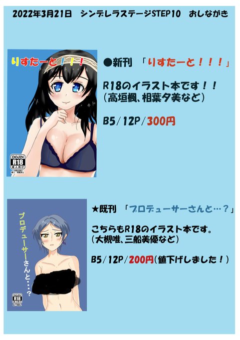 1 2 明後日のシンステ10のおしながきです!! 新刊、既刊持っていきます! よろしくお願いします~!! #cin_stage 22/03/19 22:52