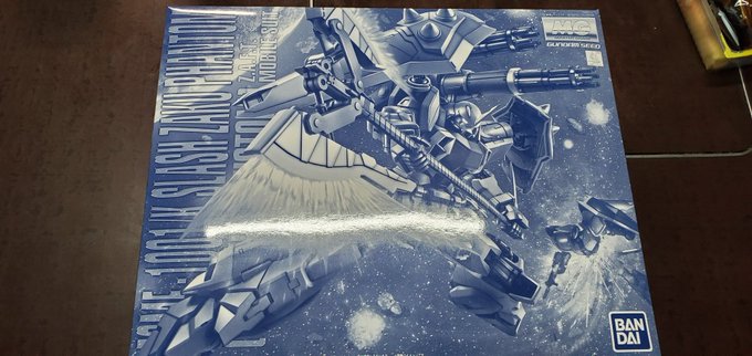 仕事から帰ったら親父に「おまえ代引きでプレバンから荷物来たぞ💢来るならちゃんと言っとけ💢」って言われて何が来たんだろうって開けてみたら、MGのスラッシュザクファントムだったw 予約したの忘れてたwww これでついに1/144以外のスラッシュザクが作れるw #ガンプラ #スラッシュザクファントム