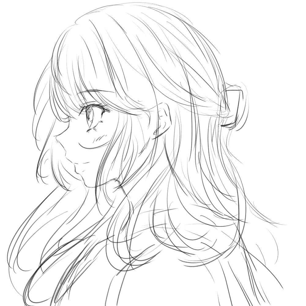 #絵描きさんと繋がりたい #イラスト 髪とか顔とか調節しつつ、 けど髪ってきれいにかけんのよねぇ
