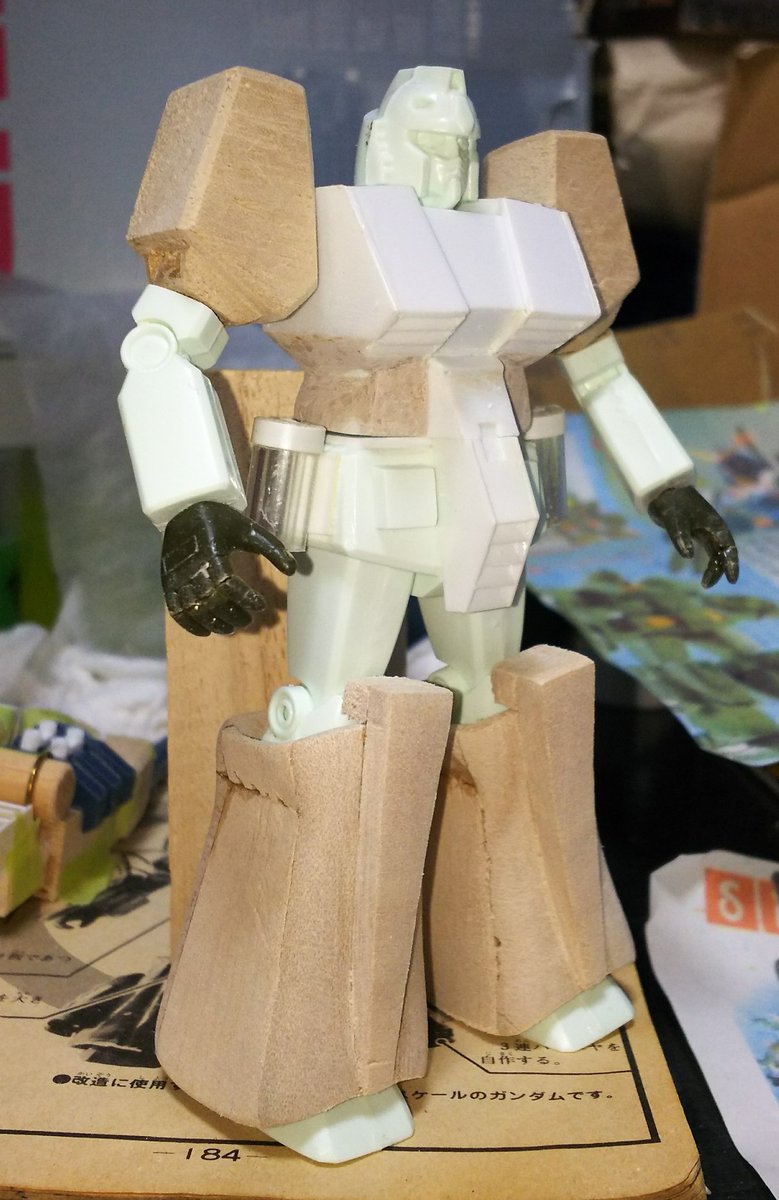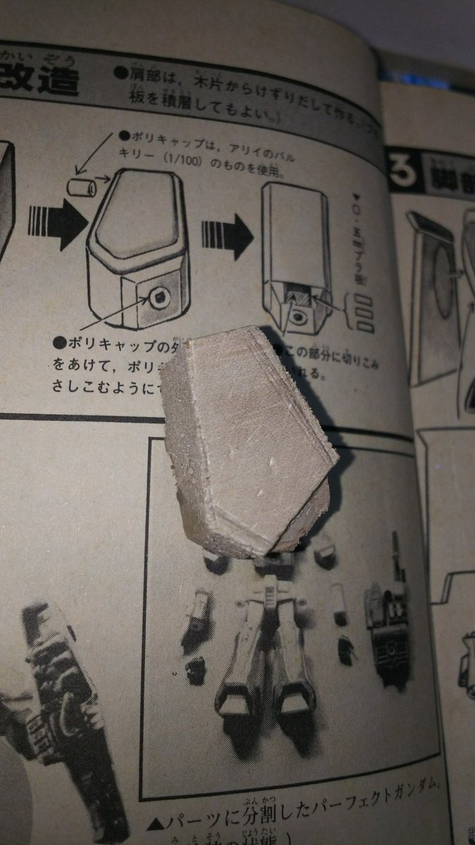 試験的に脚をバルサ材で囲ってみる。・・・いや、実際やってみると正気とは思えんのですが(汗)。 #ガンプラ #旧キット #パーフェクトガンダム