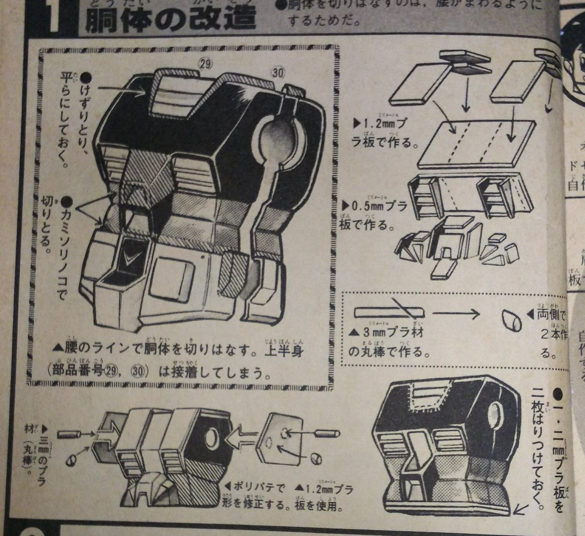 腰のラインを修正する。なんでこんな形に?と思ったらそもそも元ネタである板野さんの絵に寄せてる訳ですね。あとフルアーマーの平手を加工して手首を仮で作ってみる。 #ガンプラ #旧キット #パーフェクトガンダム #プラモ狂四郎