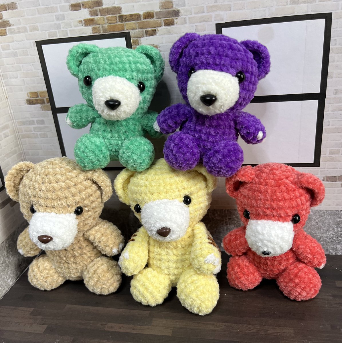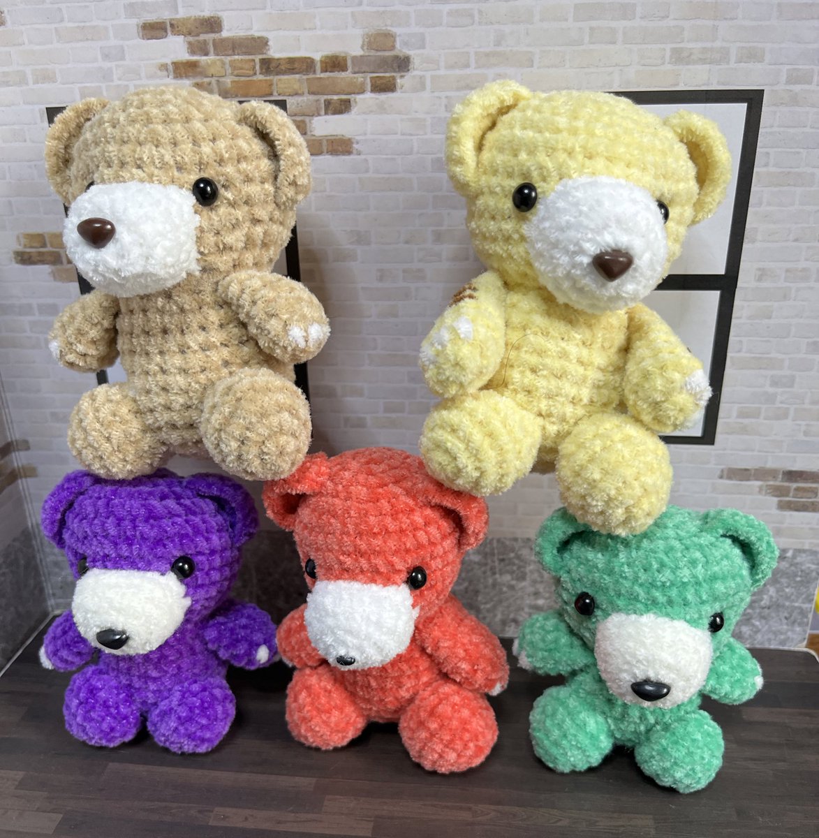 今日発売の「あみぐるみが編みたくなる糸」(ここまで商品名)の新色をモニターで編ませていただきました。 色の比較もかねて、くまさん(?)シリーズ。 個人的には、この緑系の糸が凄い好きです〜 #あみぐるみ #あみぐるみが編みたくなる糸