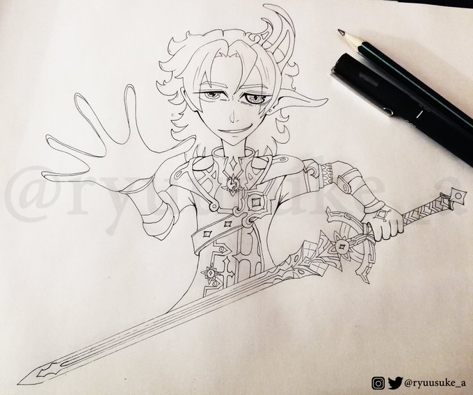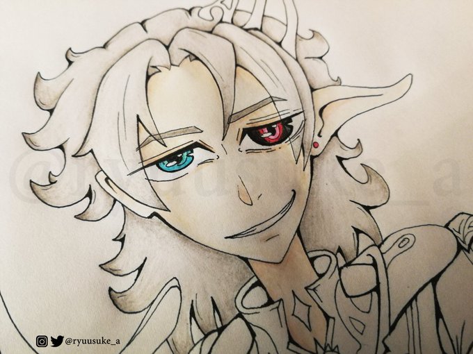 I messed up the rest of the coloring BADLY, so yeeeaaa~ 😅 *pretends it never happened* #Albedo #kreideprinz #原神 #genshin #genshinimpact #genshinimpactfanart #artwork #anime #manga #drawing #sketch #art #ArtistOnTwitter #Doodles #Practice #lineart #draw #traditionalart