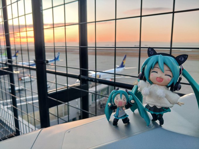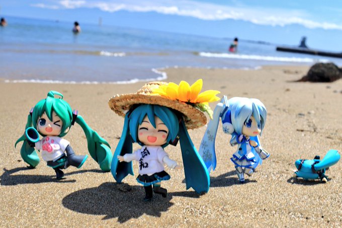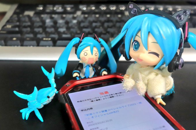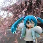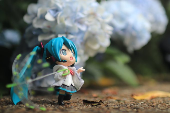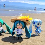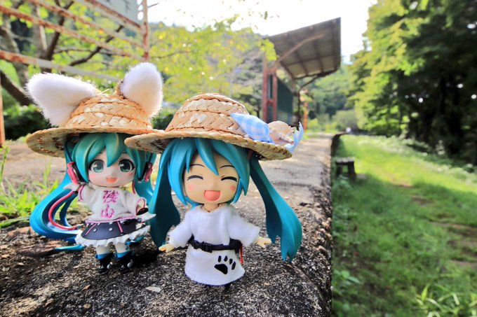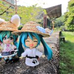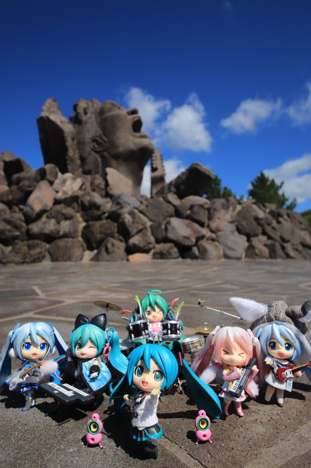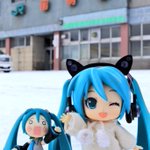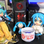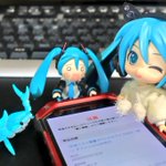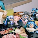 #深夜のねんどろ撮影60分一本勝負 【にちじょう】【遅刻】 お出かけ写真がメインですが・・・ 家に居る時は 寛ぐ時もご飯の時も だいたい机に前に居るので 自然とミクさん達も机の上に集まって来ます ( ´ ꒳ ` )♪