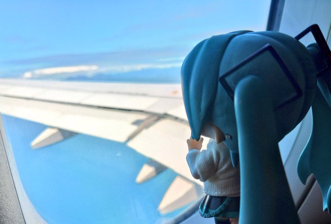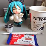 #深夜のねんどろ撮影60分一本勝負 【まったり】【フライング】 「スカイマークキットカットとコーヒーのサービス♪」 窓際で座席間も広いシートだと 空の旅という感じになりますな♪ そんな私はいつもはピーチ民 (;´∀`)
