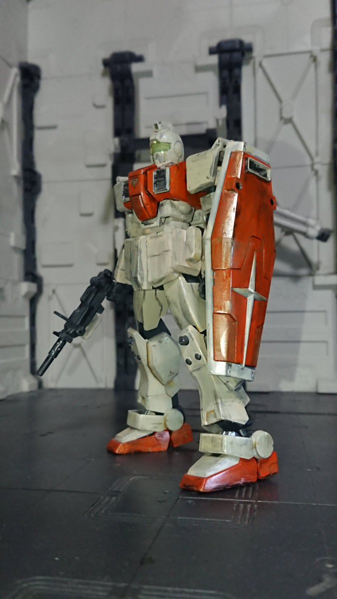 初期型ジム(もどき) 08小隊第一話に登場したサンダース軍曹の乗る機体を超絶手抜き仕様ででっち上げ 完全に「クソ手抜きだけどボールK型の横に置けばそれなりに雰囲気が出るやろw」で製作しました #今月作ったプラモ晒そうぜ #ガンプラ