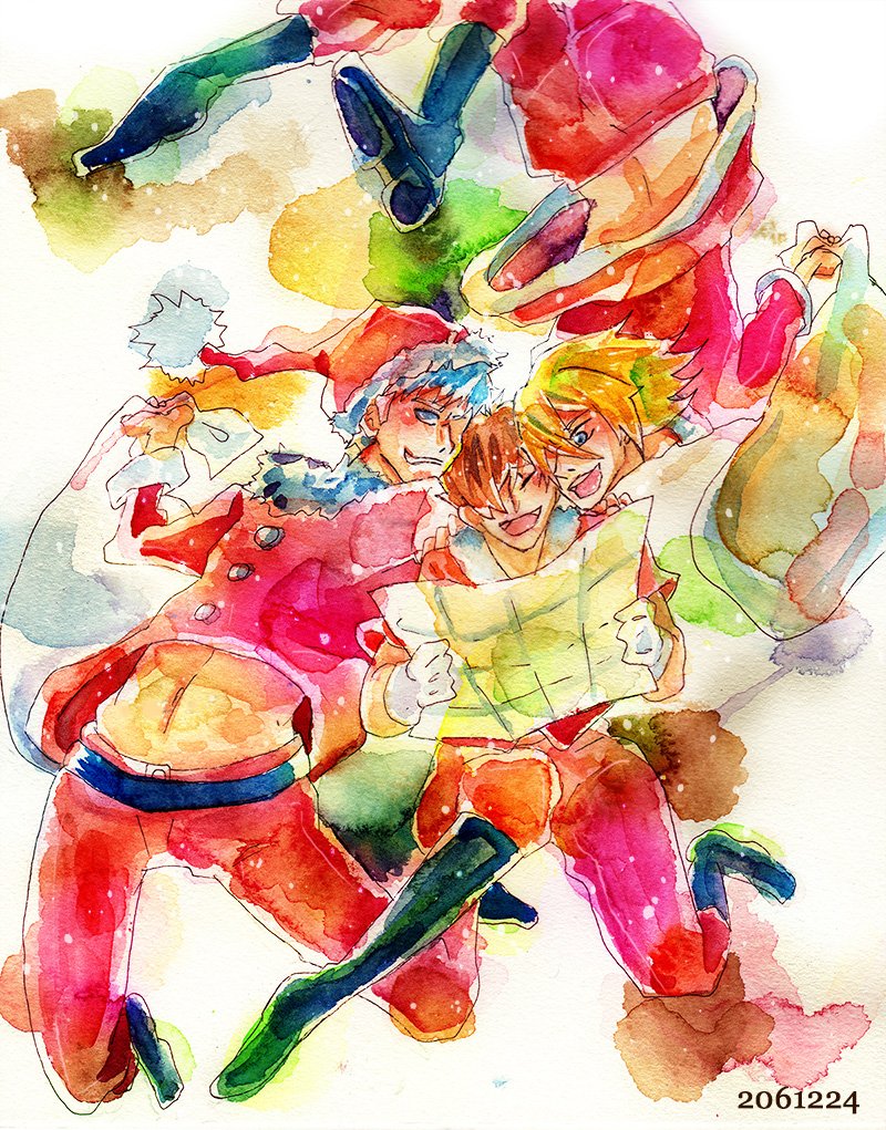 3 25 今日の一絵新作からジョー、ジェット、ハインリヒ。 4枚も続くとアレかなと思ったんですが、クリスマスイラスト楽しく描かせていただきました! キミに笑顔を届けに行くから まだ もうちょっとだけ 待っていてね #1日1サイゼロ 16/12/24 22:51