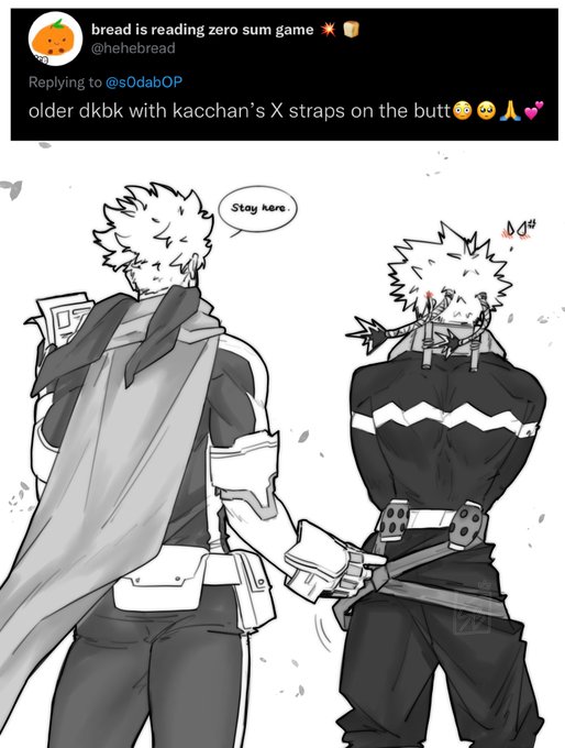 Requested by @hehebread !! Deku seizes any opportunity he can to pull Katsuki closer to him, and that means using his X straps 😋💚🧡 #BNHA #dkbk #IzukuMidoriya #bakugoukatsuki