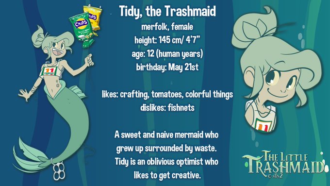 Happy #mermay2023 🐠💛 A month dedicated to mermaids, perfect for Tidy the Trashmaid and her friends! I will post more often throughout this month~ Read The Little Trashmaid on #WebtoonCanvas : webtoons.com/en/challenge/t…