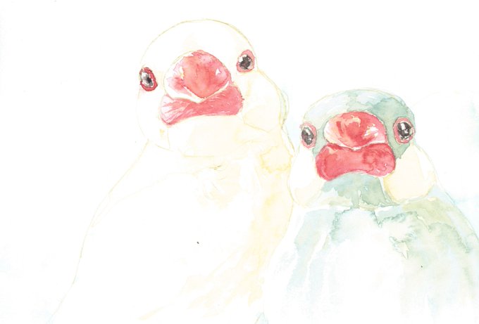 1 6 うちの白文鳥なっちゃんとシルバー文鳥ちゃんのモチ感を描いてみたくて、 初めて買ってみた水彩紙にさっそく描いてみました。 もちもち感出てるかな・・思ったより色が薄い。 #水彩 #文鳥卓好きさんと繋がりたい 20/04/23 23:23